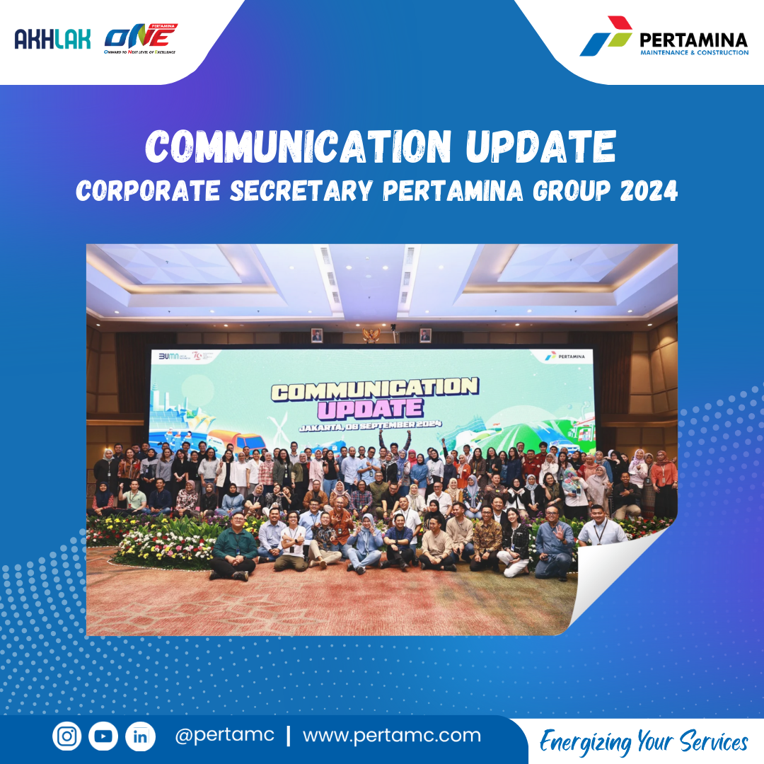 Corporate Secretary & Legal PT Pertamina Maintenance and Construction hadir dalam agenda “Communication Update Corporate Secretary Pertamina Group 2024” yang dilaksanakan pada 6 September 2024 di Grha Pertamina. Dengan pembahasan Penyusunan strategi dan rencana komunikasi, serta peningkatan koordinasi dan kerjasama dengan seluruh pemangku kepentingan.