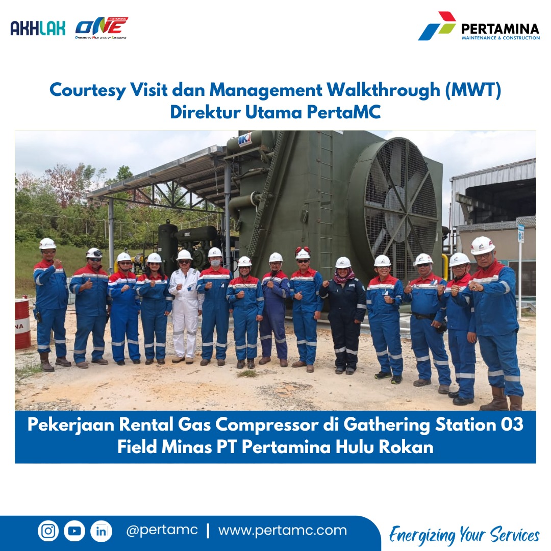 Pada kesempatan yang sama, Direktur Utama bersama Perwakilan Manajemen juga melaksanakan Management Walkthrough (MWT) pada Pekerjaan Rental Gas Compressor di Gathering Station 03 Field Minas PHR.