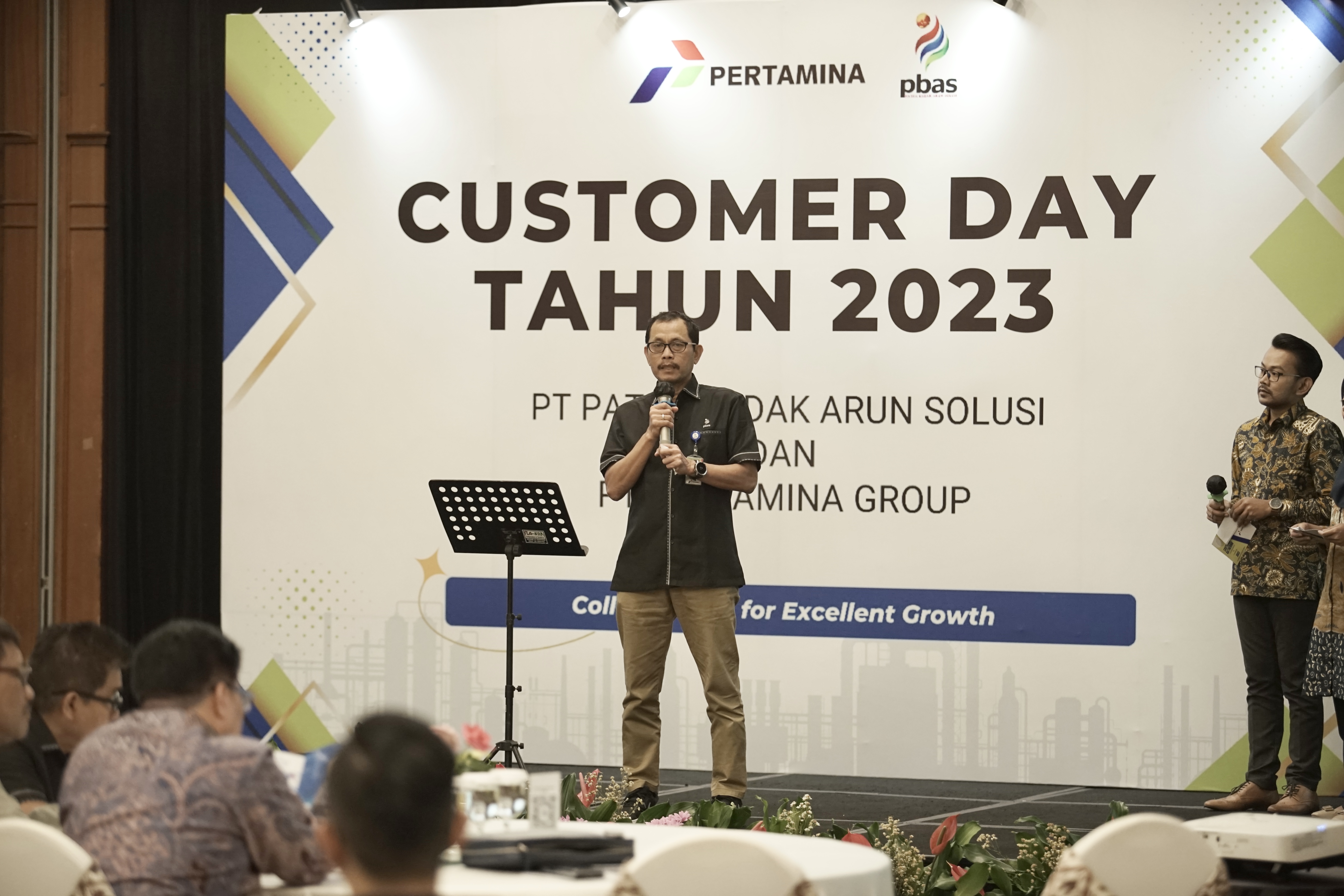 Jakarta, 26 Juni 2023 - PT Patra Badak Arun Solusi (PBAS) mengadakan kegiatan Customer Day Tahun 2023 dengan tema Collaboration for Excellent Growth bersama dengan Pertamina Group yang diadakan pada Jumat, 23 Juni 2023 lalu. Kegiatan yang dihadiri oleh Direktur Layanan Usaha beserta Tim Management dan Perwira PT PBAS ini berfokus pada pemaparan 4 lini bisnis PT PBAS yaitu Engineering Procurement Construction (EPC), Operation & Maintenance (O&M), Plant Services (PS) dan Training & Manpower Provider (TMPP). Selain itu, adapun pemaparan program strategis, pencapaian PT PBAS serta pemberian penghargaan bagi para Top User.