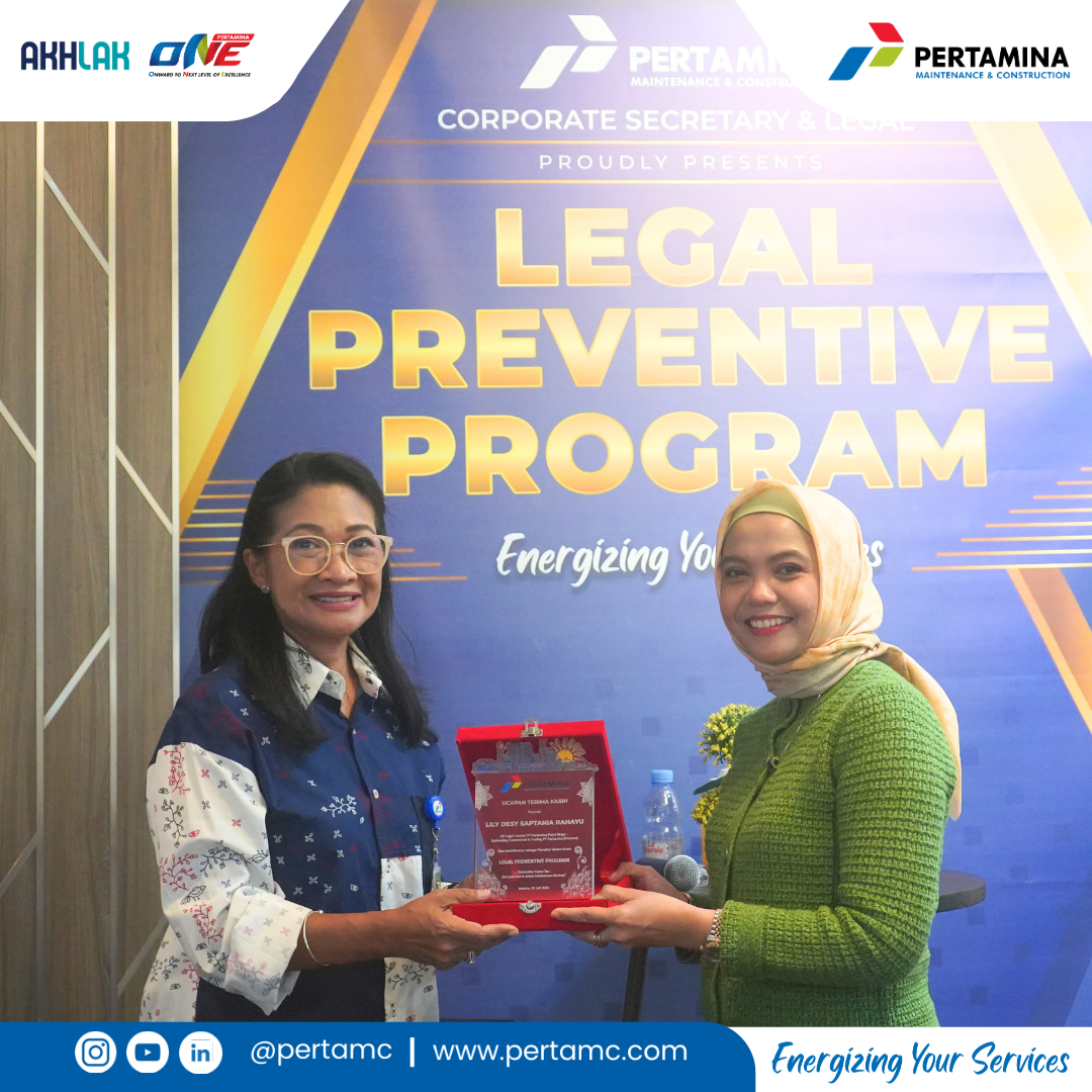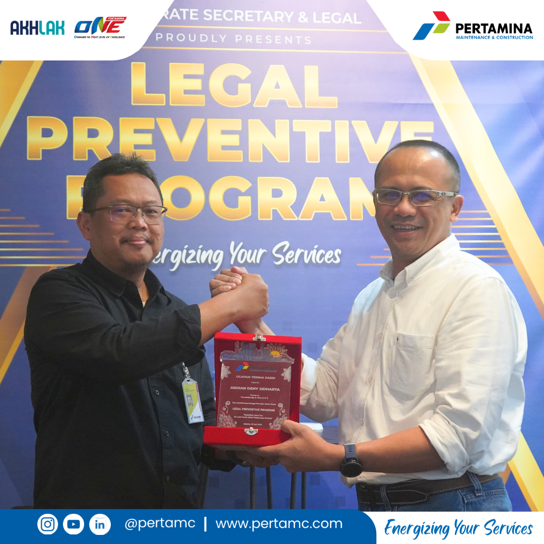 Jakarta - Legal Preventive Program PT Pertamina Maintenance and Construction (PertaMC) dilaksanakan pada Jum’at, 5 Juli 2024, mengusung tema “Kontraktor Harus Tau : Do’s and Don’ts dalam Pelaksanaan Kontrak”, sebagai bentuk Upskilling dan implementasi tata nilai AKHLAK yakni “Kompeten”. Agenda dihadiri oleh Direksi, Management dan Perwira PertaMC.