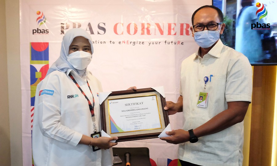 PBAS CORNER (collaboration to energize your future) Edisi Bulan Mei 2022 mengangkat tema Management On Top dengan mengundang Narasumber utama Sharing Session yaitu Ibu Mia Krishna Anggraini, Direktur SDM & Penunjang Bisnis PT Pertamina Patra Niaga Subholding Commercial & Trading. "there is no growth in comfort zone", ucap Ibu Mia dalam menyemangati Insan PBAS untuk terus bergerak diluar comfort zone. selain itu, terdapat lima highlight yang disampaikan oleh Ibu Mia dari kegiatan Sharing Session Management On Top yaitu Competitive Advantage, Tetapkan Target dalam Bekerja, Control Your Own Destiny, Bangun Keunikan Diri, dan Find Your Purpose Beyond Salary. Kegiatan Sharing Session yang dilaksanakan secara hybrid ini menjadi suatu wadah bagi para Top Management untuk berbagi ilmu dan pengetahuan serta menceritakan pengalaman kerja keras yang memotivasi para Insan PBAS untuk terus tumbuh dengan produktivitas dan kreativitas serta semangat bekerja secara optimal.