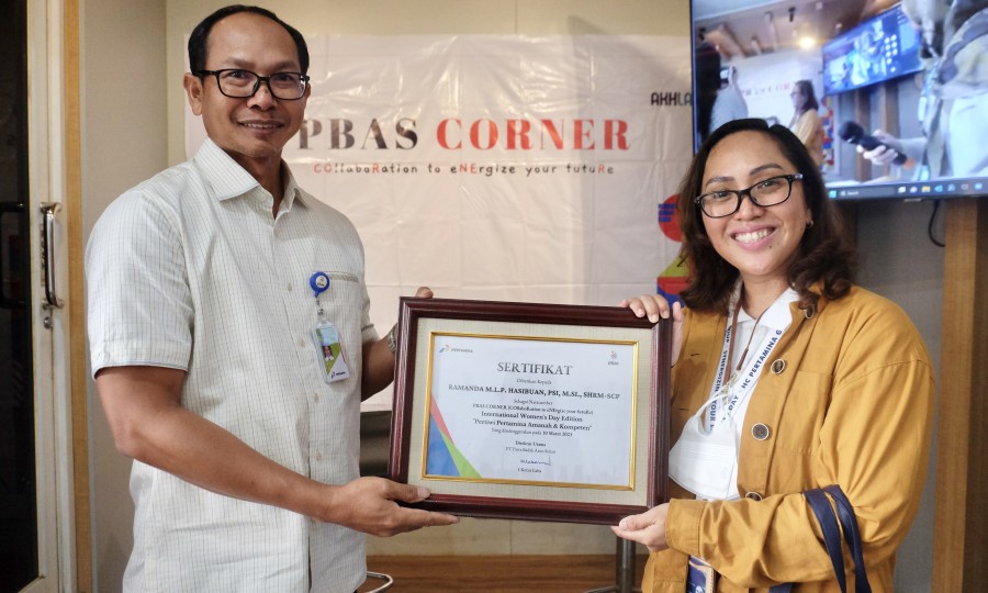 Jakarta, 11 Maret 2023 - Dalam rangka merayakan Hari Perempuan Internasional (International Women's Day) pada 8 Maret 2023 PT Patra Badak Arun Solusi (PBAS) mengadakan kegiatan PBAS CORNER (Colllaboration to Energize Your Future) bertema International Women's Day Edition : Pertiwi Pertamina Amanah & Kompeten dengan narasumber Ibu Ramanda M.L.P. Hasibuan, Psi, M.Si., SHRM-SCP selaku Manager Talent Services - SS HC PT Pertamina (Persero).