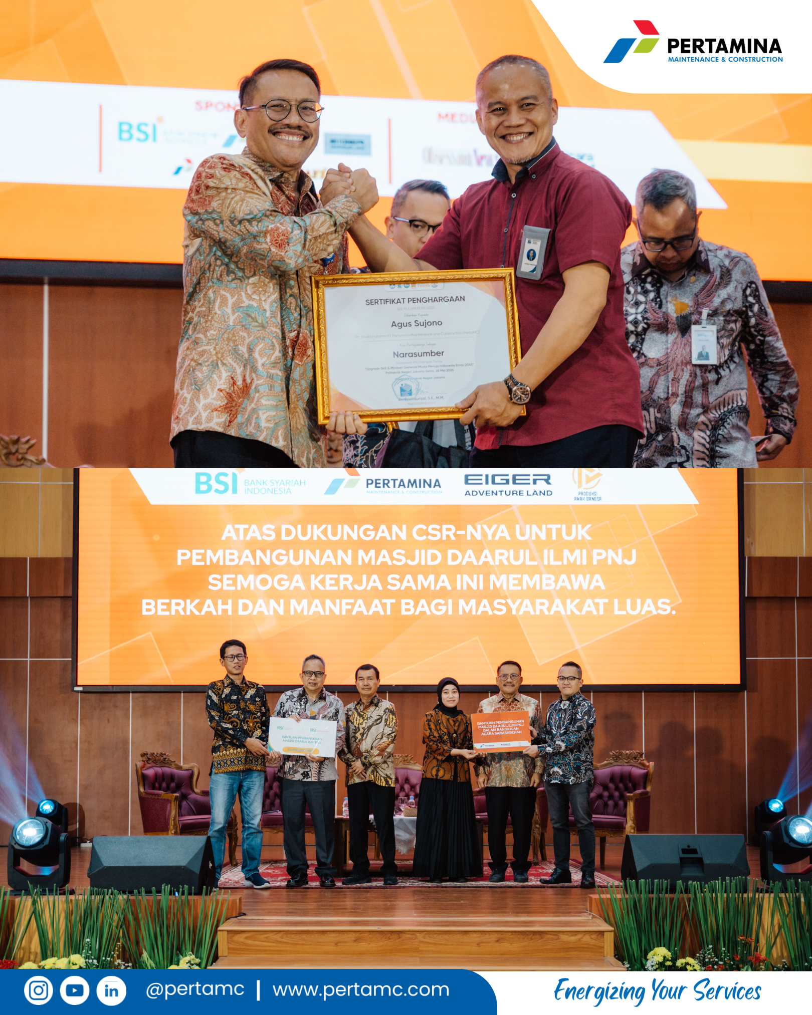 Selain wujud Tanggung Jawab Sosial dan Lingkungan (TJSL) Perusahaan, PertaMC turut berkontribusi dalam mendukung Program CSR Pembangunan Infrastruktur Masjid Daarul Ilmi PNJ, sebagai simbol sinergi antara ilmu, AKHLAK, dan iman dalam mencetak karakter pemimpin masa depan.