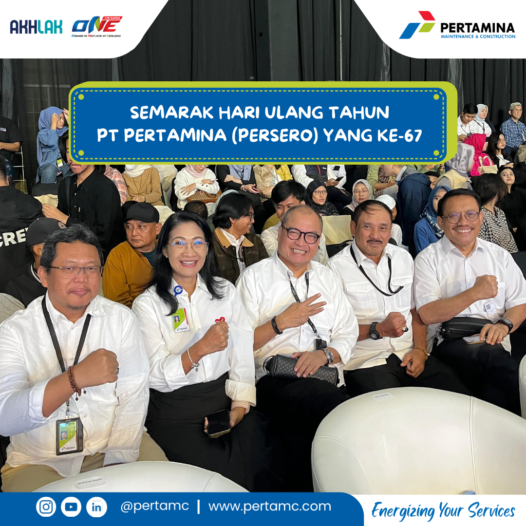 Jakarta, 10 Desember 2024 - PT Pertamina Maintenance and Construction (PertaMC) turut memeriahkan perayaan HUT ke-67 Pertamina dengan tema : Energizing the Acceleration yang diselenggarakan di Ballroom Grha Pertamina. Hal ini menjadi momentum berharga untuk merefleksikan perjalanan Pertamina sebagai lokomotif energi nasional sekaligus mengukuhkan komitmen bersama dalam mendukung akselerasi pembangunan energi yang berkelanjutan.