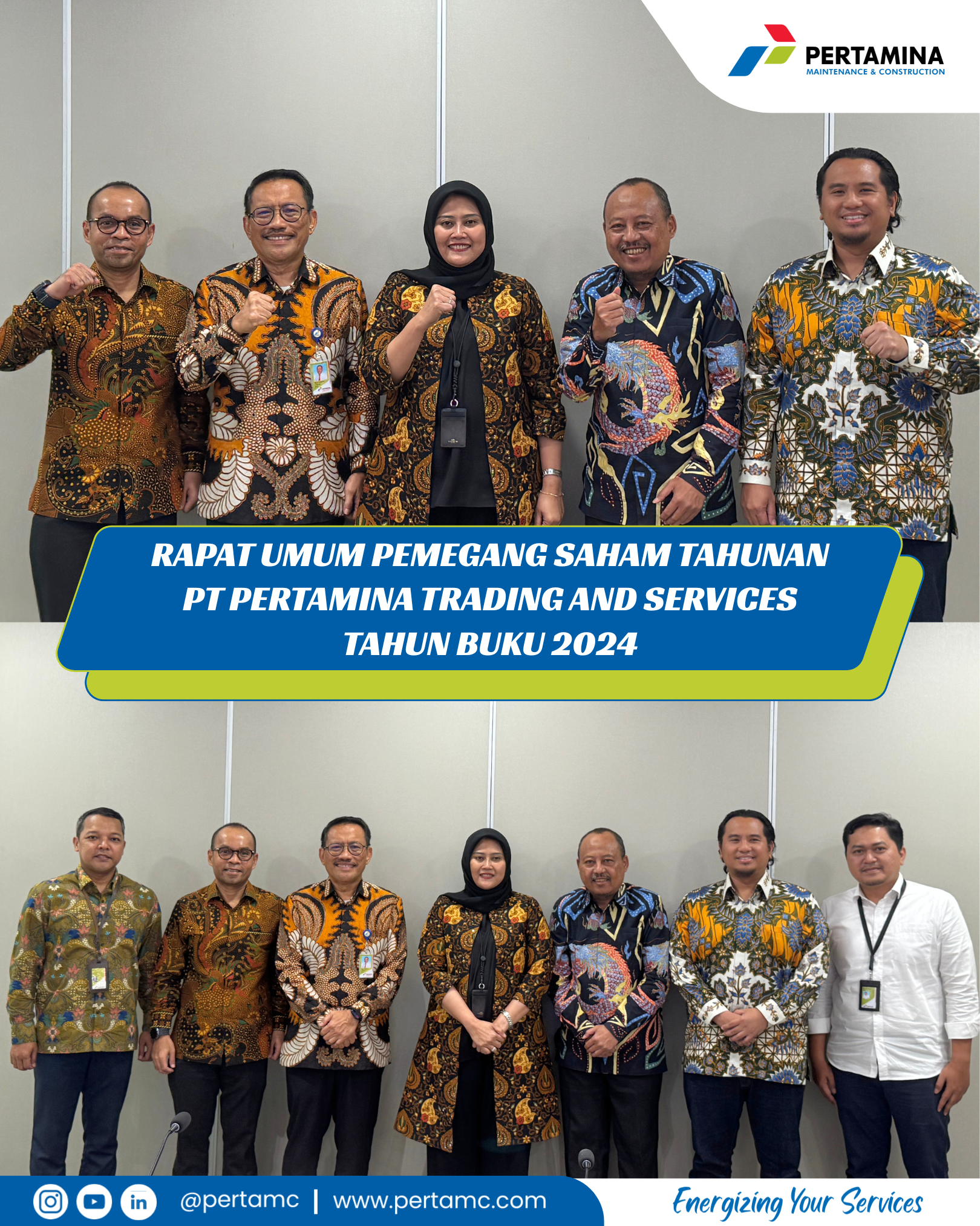 Jakarta, 16 Juni 2025 - Dalam rangka menjalankan peran aktif sebagai bagian dari ekosistem Pertamina Group, PT Pertamina Maintenance & Construction (PertaMC) hadir dalam pelaksanaan Rapat Umum Pemegang Saham Tahunan (RUPST) Tahun Buku 2024 PT Pertamina Trading and Services. Kehadiran ini merupakan bagian dari komitmen PertaMC sebagai pemegang saham minoritas dalam mendukung penguatan tata kelola perusahaan yang baik (Good Corporate Governance/GCG), serta penguatan koordinasi dan sinergi antar entitas dalam mendukung keberlanjutan bisnis grup.