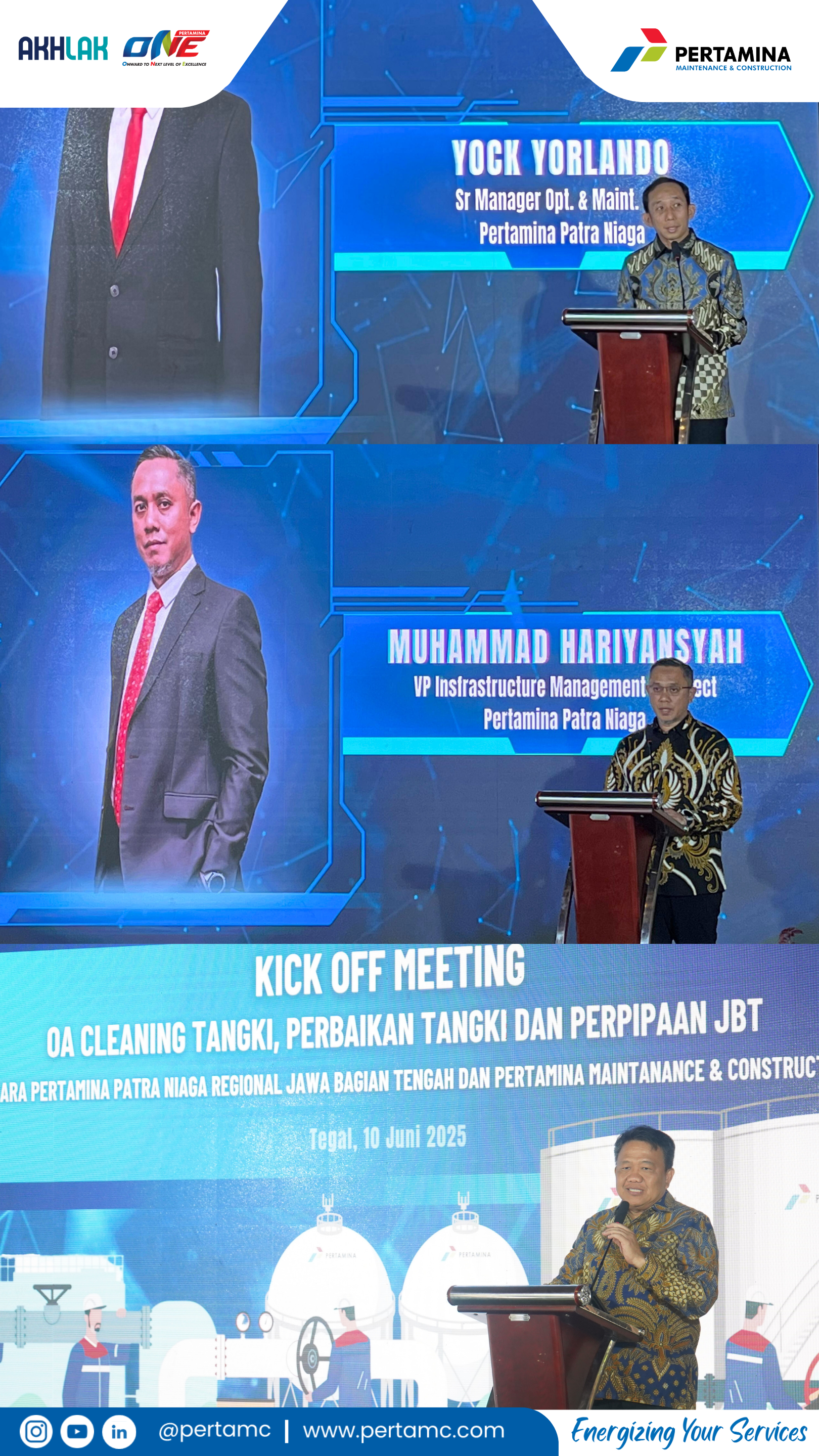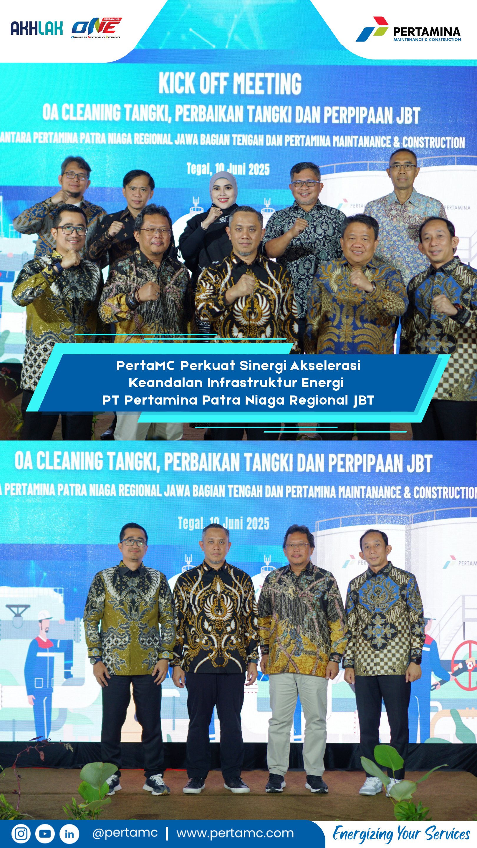 Tegal, 10 Juni 2025 - PT Pertamina Maintenance & Construction (PertaMC) terus menunjukkan komitmennya dalam memperkuat keandalan infrastruktur energi nasional melalui partisipasi aktif dalam rangkaian agenda strategis penguatan sinergi dan akselerasi keandalan penerapan Asset Integrity Management System di wilayah PT Pertamina Patra Niaga Regional Jawa Bagian Tengah (JBT).