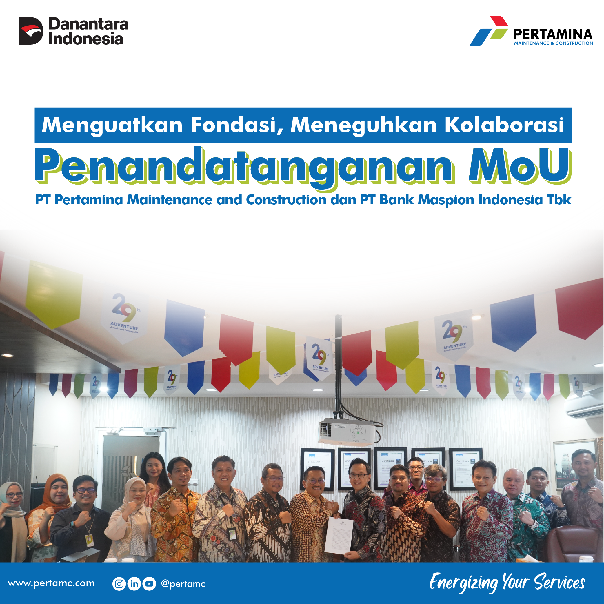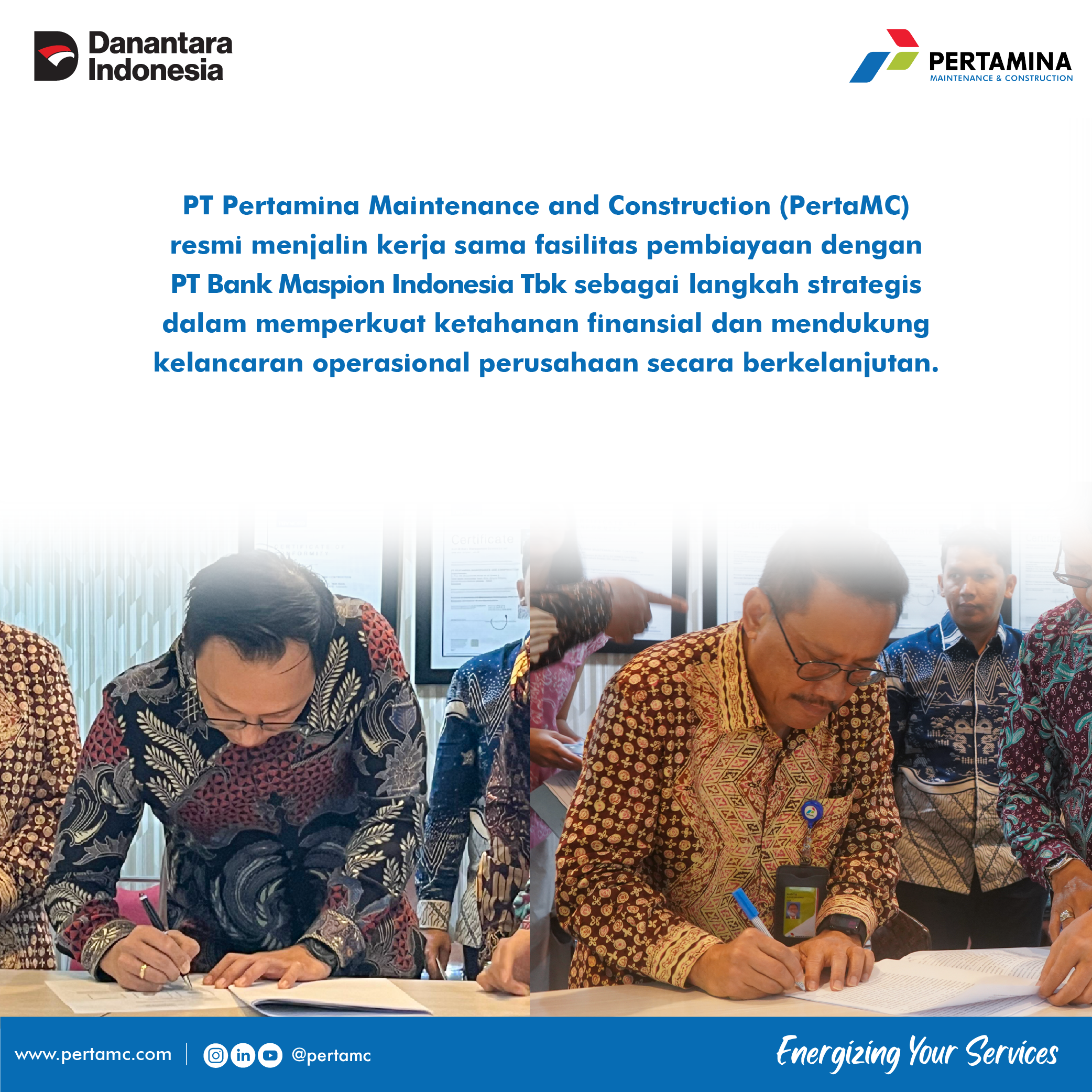 Jakarta, 22 Juli 2025 - PT Pertamina Maintenance and Construction (PertaMC) resmi menjalin kerja sama fasilitas pembiayaan dengan PT Bank Maspion Indonesia Tbk sebagai langkah strategis dalam memperkuat ketahanan finansial dan mendukung kelancaran operasional perusahaan secara berkelanjutan.