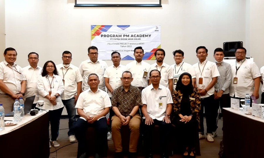 Jakarta, 29 November 2022 - PT Patra Badak Arun Solusi (PBAS) bersama Paramadiva Indonesia sebagai Authorized Training Partner dari Management Institute (PMI) mengadakan kegiatan Pelatihan Project Management (CAPM) Program PM Academy tahun 2022 yang dilaksanakan pada 7 - 11 November 2022 (batch 1) dan 14 - 18 November 2022 (batch 2). Kegiatan pelatihan ini dihadiri oleh Direktur Utama PT PBAS dengan peserta yang terdiri dari Tim Engineer, Tim Cost Engineer, PM/SM, Pekerja Proyek/Site sesuai dengan performance dan kebutuhan Perusahaan (Supporting Project) : Business Development, Procurement, General Affair.