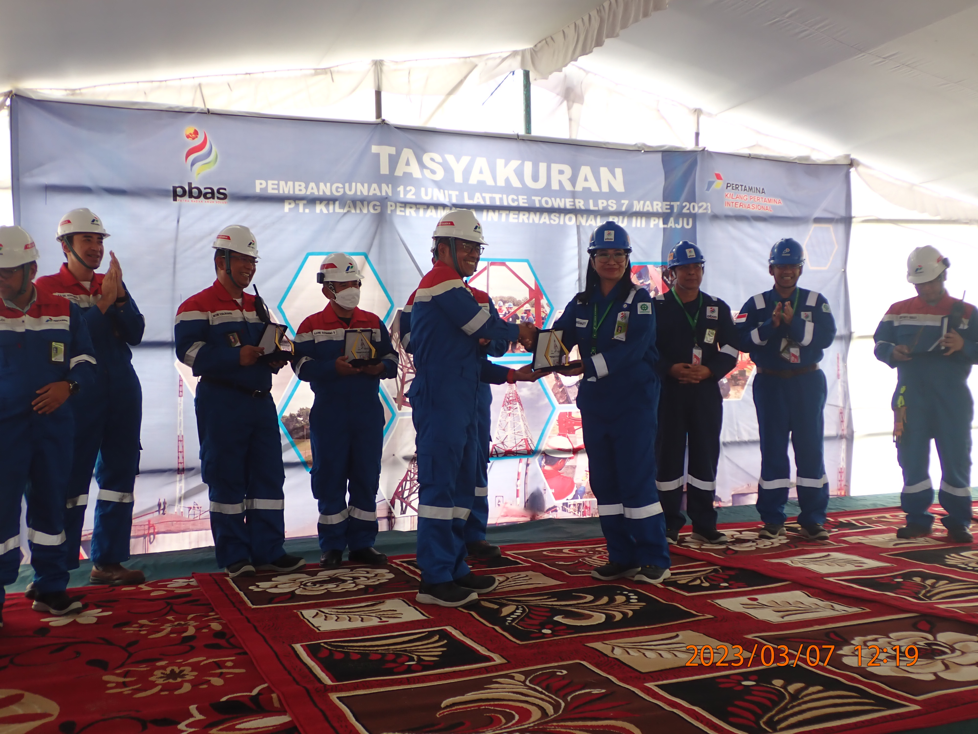 Jakarta, 8 Maret 2023 - PT Patra Badak Arun Solusi (PBAS) bersinergi dengan PT Kilang Pertamina Internasional pada pembangunan 30 unit Lattice Tower Lightning Protection System (LPS) (Tower Penangkal Petir) di RU III Plaju dan Sungai Gerong. PT PBAS sebagai main contractor telah menyelesaikan pembangunan LPS di sekitar tangki produk dengan jumlah 10 unit di area Kilang Plaju dan 30 unit di area Kilang Sungai Gerong sejak 14 November 2022 hingga 25 Januari 2023. Pembangunan LPS dilakukan secara bertahap antara lain tahap 1 sebanyak 18 tower (25/02/2022 hingga 09/06/2022) dan tahap 2 sebanyak 12 tower (14/11/2022 hingga 25/01/2023).