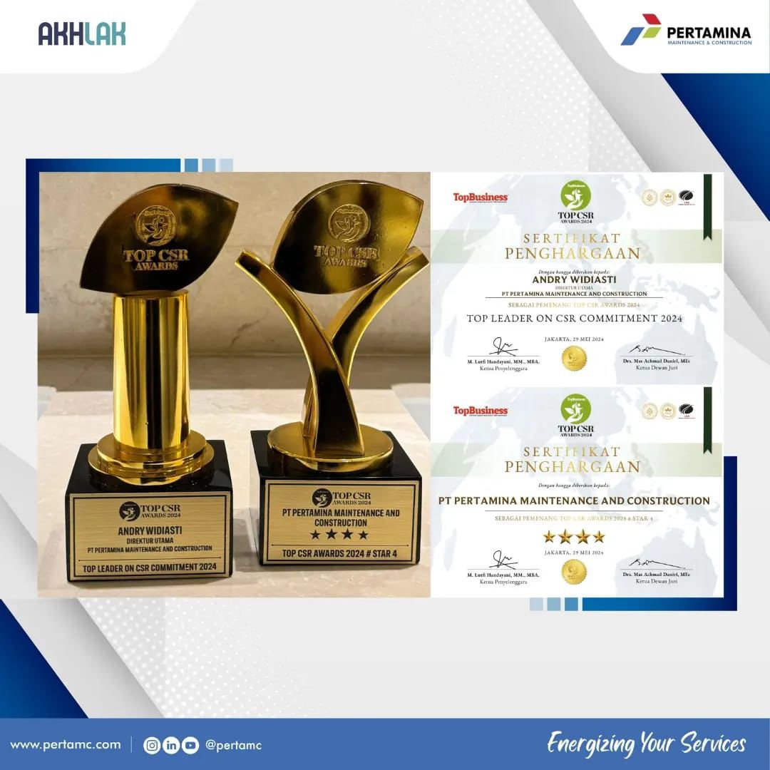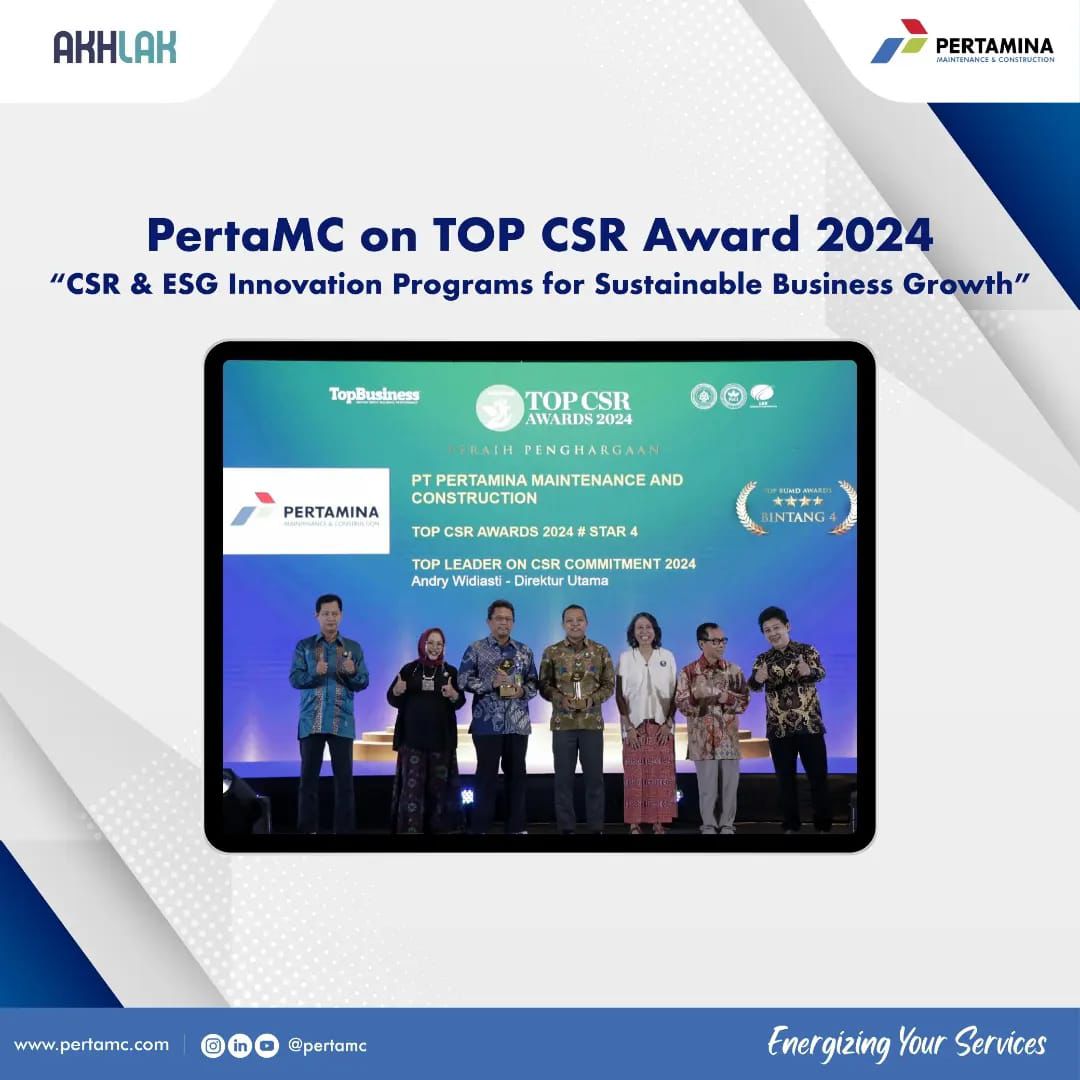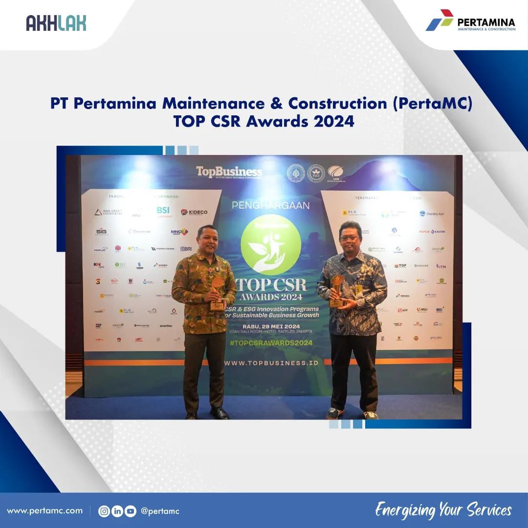 Acara Puncak Penghargaan TOP CSR Awards 2024 telah dilaksanakan pada Rabu, 29 Mei 2024 di Hotel Raffles, Jakarta. Dihadiri oleh Bapak Ambar Dwi Sustomo Direktur Layanan Usaha, Bapak Suparjono Corporate Secretary & Legal dan Tim Communication & Relations PT Pertamina Maintenance and Construction.