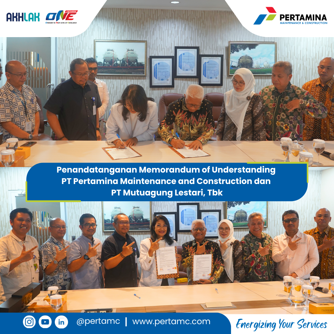 Jakarta - Ceremonial Penandatanganan Memorandum of Understanding (MoU) Kerjasama Usaha PT Pertamina Maintenance and Construction (PertaMC) dan PT Mutuagung Lestari Tbk yang dilaksanakan pada 20 Agustus 2024. Agenda di hadiri oleh Direksi dan Management PT Pertamina Maintenance and Construction dan PT Mutuagung Lestari Tbk. Kolaborasi kerjasama pada Bidang Sertifikasi, Inspeksi, Pengujian, dan Kalibrasi.