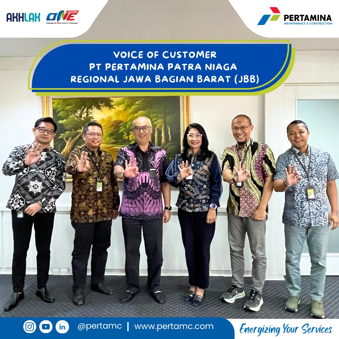 Jakarta, 15 Januari 2025 - PT Pertamina Maintenance and Construction (PertaMC) telah melaksanakan agenda Voice of Customer di PT Pertamina Patra Niaga Regional Jawa Bagian Barat (JBB) pada Rabu, 15 Januari 2025 yang dihadiri oleh Direktur Utama, Direktur Layanan Usaha, Corporate Secretary & Legal, VP CMPS dan Manager MSTM PT Pertamina Maintenance and Construction (PertaMC) serta Manajemen PT Pertamina Patra Niaga Regional JBB.