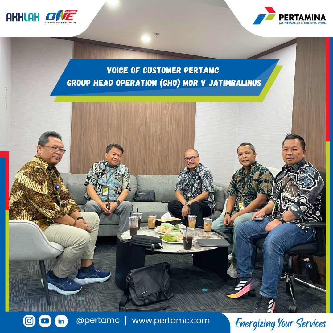 Surabaya - PT Pertamina Maintenance and Construction (PertaMC) melaksanakan agenda Voice of Customer PertaMC ke Group Head Operation Jatimbalinus PT Pertamina Patra Niaga di MOR V Surabaya pada 23 Oktober 2024 yang dihadiri oleh Management PertaMC yaitu Komisaris Utama, Direktur Layanan Usaha, dan Corporate Secretary & Legal.