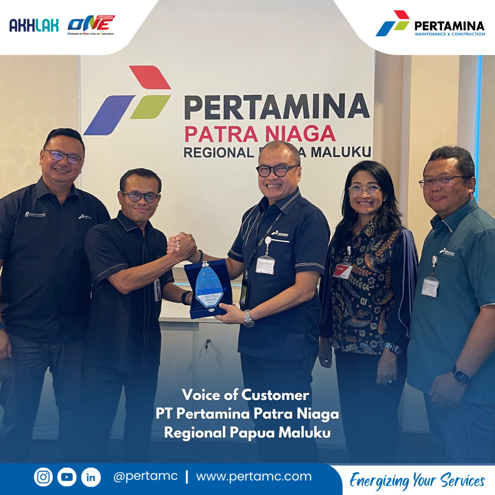 Papua - PT Pertamina Maintenance and Construction (PertaMC) telah melaksanakan agenda Voice of Customer di PT Pertamina Patra Niaga Regional Papua Maluku pada 7 November 2024 yang dihadiri oleh Komisaris Utama, Direktur Utama, Direktur Layanan Usaha, dan Corporate Secretary & Legal.