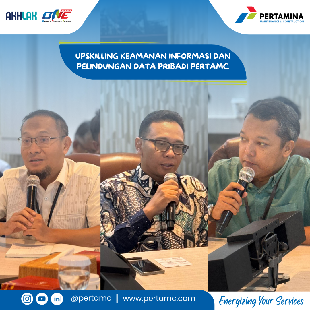 Jakarta, 13 Desember 2024 - PT Pertamina Maintenance and Construction (PertaMC) dengan sukses telah menyelenggarakan kegiatan “Upskilling Keamanan Informasi dan Pelindungan Data Pribadi” pada Jumat, 13 Desember 2024. Acara ini menjadi langkah nyata PertaMC dalam meningkatkan kesadaran Perwira terkait pentingnya keamanan informasi dan perlindungan data pribadi di era digital.